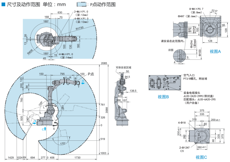 尺寸及動(dòng)作范圍