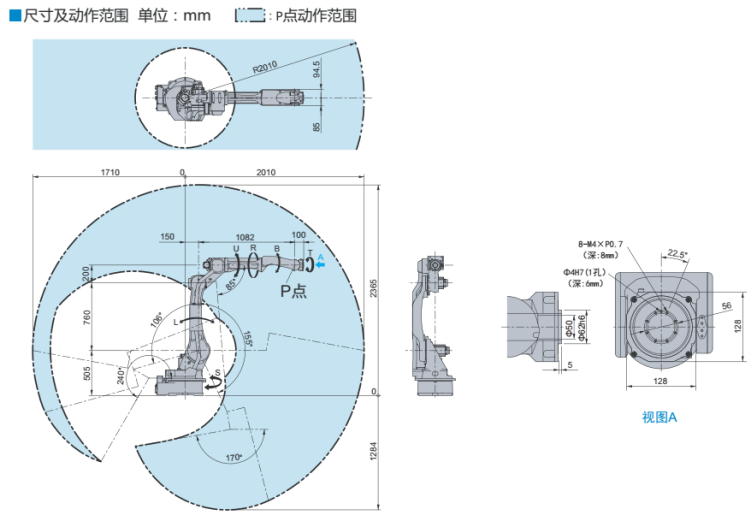 6軸垂直多關(guān)節(jié) 負(fù)載:10Kg 動(dòng)態(tài)范圍:2010mm